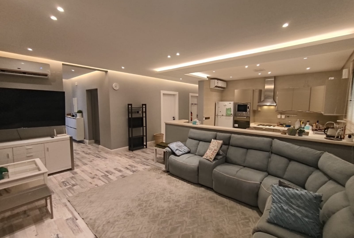 • صالة فسيحة مفتوحة على مطبخ راكب ومجهّز بالكامل 🍽