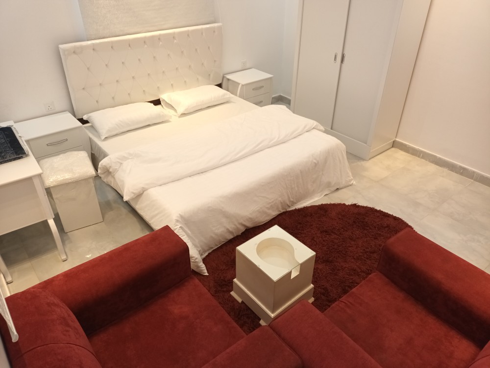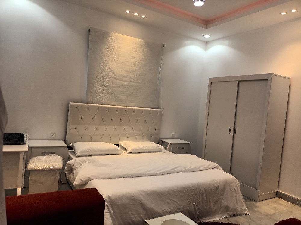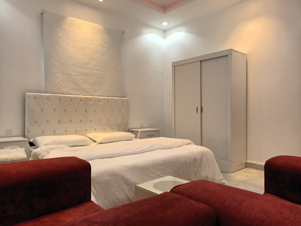 شقة جديدة لكس مفروشة تقع في حي الروضة غرب حديقة المطاروممشى الروضة بالمواصفاتالتالية