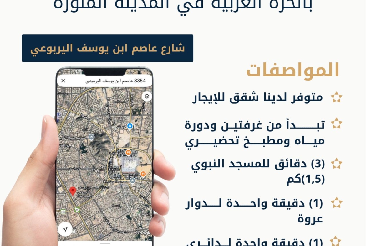 – (3) دقائق للمسجد النبوي 1.5 كم.