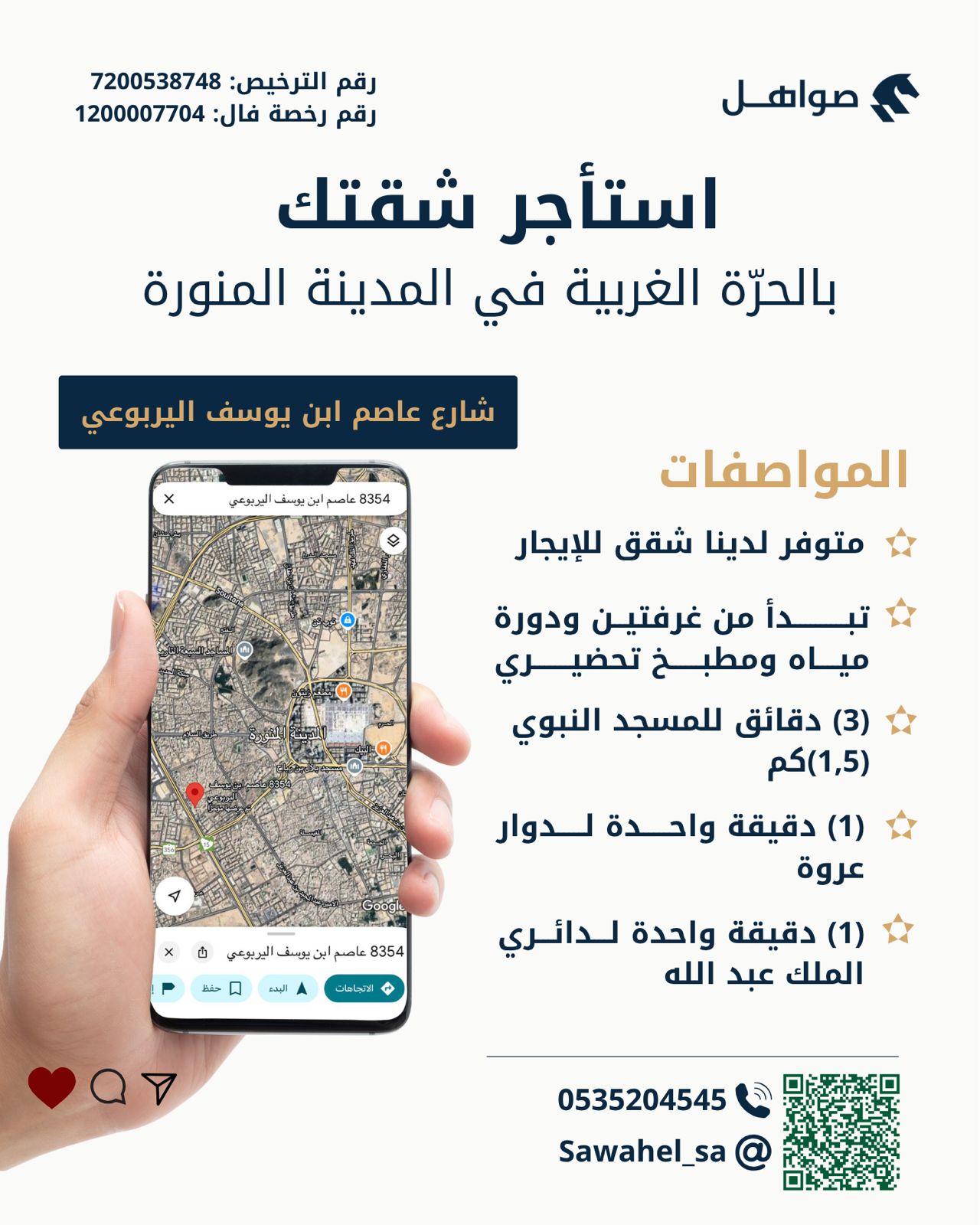 شقق للإيجار بحي الغربية بمنطقة المدينة المنورة
